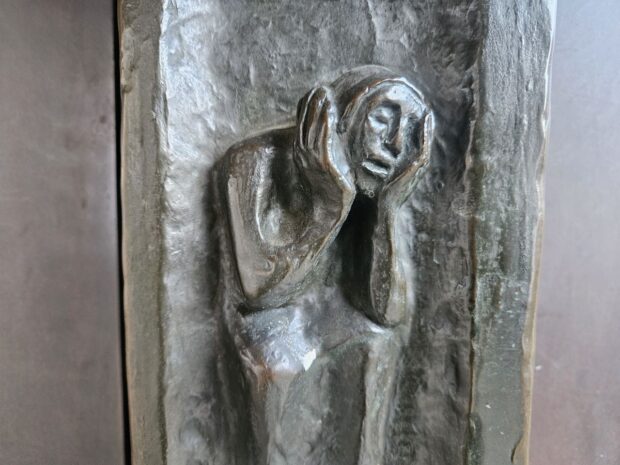 Passionsandacht zur Verleugnung des Petrus mit Plastik von Ulrich Henn und Bild von Caravaggio